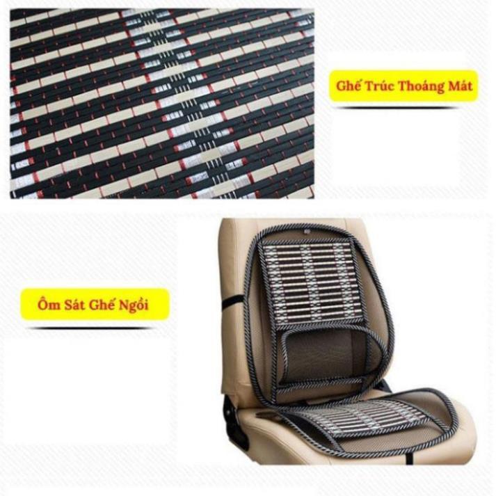 Bộ Lót Ghế Tựa Lưng Ô Tô Lưới Trúc Massage Lưng Chống Mỏi, Chống Nóng Hiệu Quả