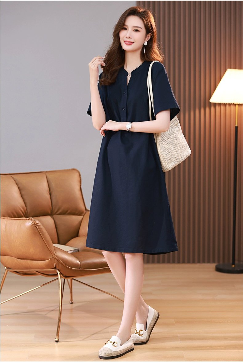 ღ THÔNG TIN SẢN PHẨM: Tên sản phẩm: Đầm sơ mi xanh navy Chất liệu: Chất gân ý Chi tiết sản phẩm: không lót, không túi Thông số size: S, M, L,