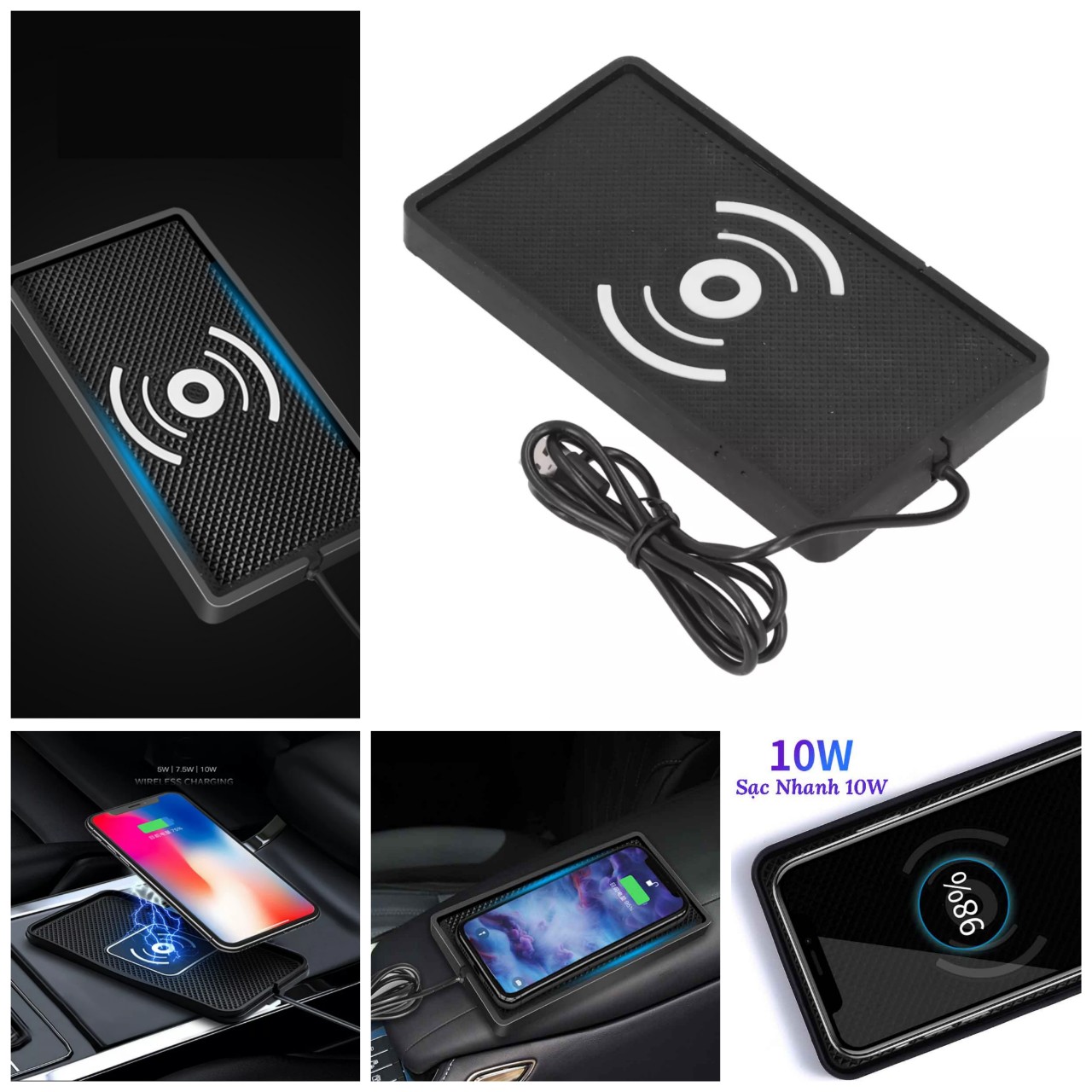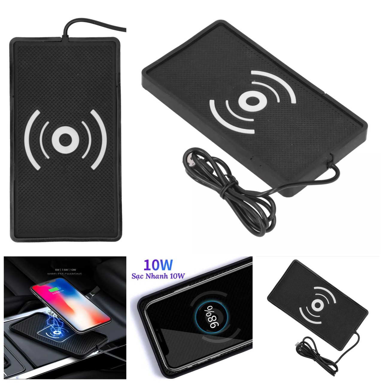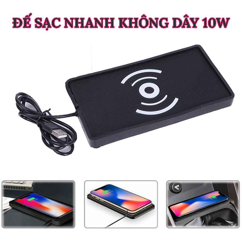 Đế sạc điện thoại không dây sạc nhanh Qi 10W có đệm chống sốc dùng trong xe hơi văn phòng hoặc phòng ngủ hay bất kỳ đâu siêu tiện tự ngắt khi đây