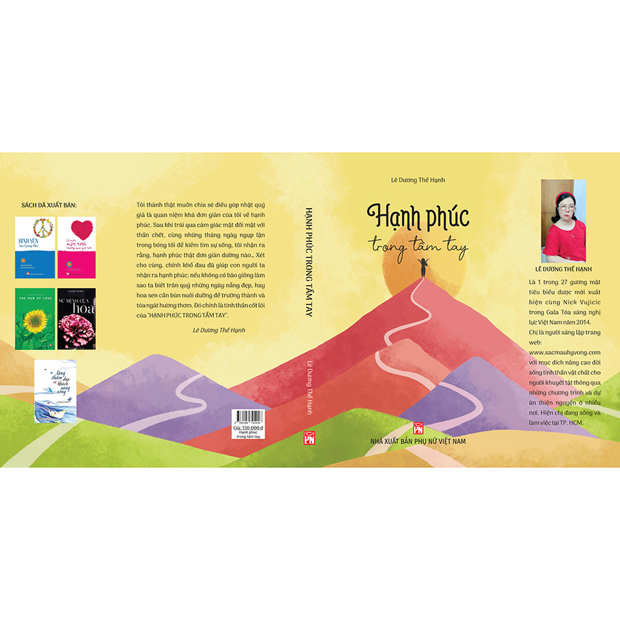 Mua tại TiktokI. THÔNG TIN CHUNG VỀ SÁCH "HẠNH PHÚC TRONG TẦM TAY" Nhà xuất bản Phụ nữ Việt Nam vừa phát hành tác phẩm "Hạnh phúc trong tầm tay" của tác giả Lê Dương Thể Hạnh vào tháng 10/2023 trên toàn quốc, nhân dịp ngày Phụ nữ Việt Nam 20/10 - tháng tôn vinh nữ giới, đặc biệt những tác giả nữ. Có thể nói, "Hạnh phúc trong tầm tay" của Lê Dương Thể Hạnh ra mắt bạn đọc rất đúng thời điểm, vì đây là dịp cô có thể chia sẻ nhiều điều về hành trình tìm đến mặt trời của mình… Hạnh phúc trong tầm tay của tác giả Lê Dương Thể Hạnh thuộc dòng sách bổ trợ kỹ năng sống, là "rút ruột" chia sẻ từ tác giả về những đức tính quý báu mà con người cần có trong đời để cuộc sống trở nên chất lượng, trọn vẹn hơn. Là một tác giả khuyết tật, viết sách bằng phần mềm hỗ trợ giọng nói và nhờ sự giúp đỡ của cộng sự, Lê Dương Thể Hạnh cho thấy một nghị lực phi thường trong việc gieo những con chữ thiện lương, được trau chuốt cẩn thận để giúp vun bồi tâm hồn những bạn đọc "thuận duyên" đọc sách. Đồng hành cùng bóng tối hơn 15 năm, hơn ai hết, tác giả thấu hiểu việc "vượt tối" để tìm đến ánh sáng lương thiện trong "cõi người ta" này vô cùng gian nan. Và với những người thuộc nhóm "còn lại" như chính bản thân tác giả - khuyết tật đủ thứ, khả năng di chuyển và hoạt động hạn chế - hành trình "vượt tối" còn gian nan hơn gấp nhiều lần. Tuy vậy, chị không bỏ cuộc. Ở độ tuổi mà mọi người đã yên bề gia thất, con cái lớn khôn, tác giả Lê Dương Thể Hạnh, như bộc bạch của chị trong các trang sách, vẫn vui vẻ bên gia đình, cha mẹ, vẫn tận hưởng cuộc sống theo cách của riêng mình, và để biết rằng, ngày nào còn thở trên cuộc đời này thôi đã là may mắn lắm rồi. Nhưng những điều mà chị muốn độc giả hướng đến không dừng lại ở đó. Chị tâm sự: "Đến với Hạnh phúc trong tầm tay, có lẽ bạn sẽ tạm quên đi những nỗi đau ở quá khứ, và bạn cũng xa rời gánh nặng áo cơm để trở về với những giá trị - rất bình dị và rất chân thật từ trong sâu thẳm tâm hồn mình". Các chủ đề mà tác giả Lê Dương Thể Hạnh xoáy sâu vào gồm có bình yên, bao dung, khiêm tốn, yêu thương, lễ - nghĩa - trí - tín, tương trợ, tự do và hạnh phúc. Tuy xa mà gần, tuy gần mà xa, chị dẫn dắt độc giả qua từng chủ đề một cách dí dỏm, lối dẫn chuyện có duyên, văn phong khúc chiết để thấy được rằng, hạnh phúc không ở đâu xa mà nằm trong lòng bàn tay ta! Chị bộc bạch: "… Khi may mắn được sinh ra với cơ thể và trí não của một con người, có lẽ ta nên kích hoạt sóng não dành cho con người, vượt qua những nỗi sợ, mạnh dạn tiến về phía trước để đón nhận một tương lai tốt đẹp và thanh thản lưu lại những điều kỳ diệu cho cuộc đời. Và đây chính là tinh thần cốt lõi của "HẠNH PHÚC TRONG TẦM TAY"".