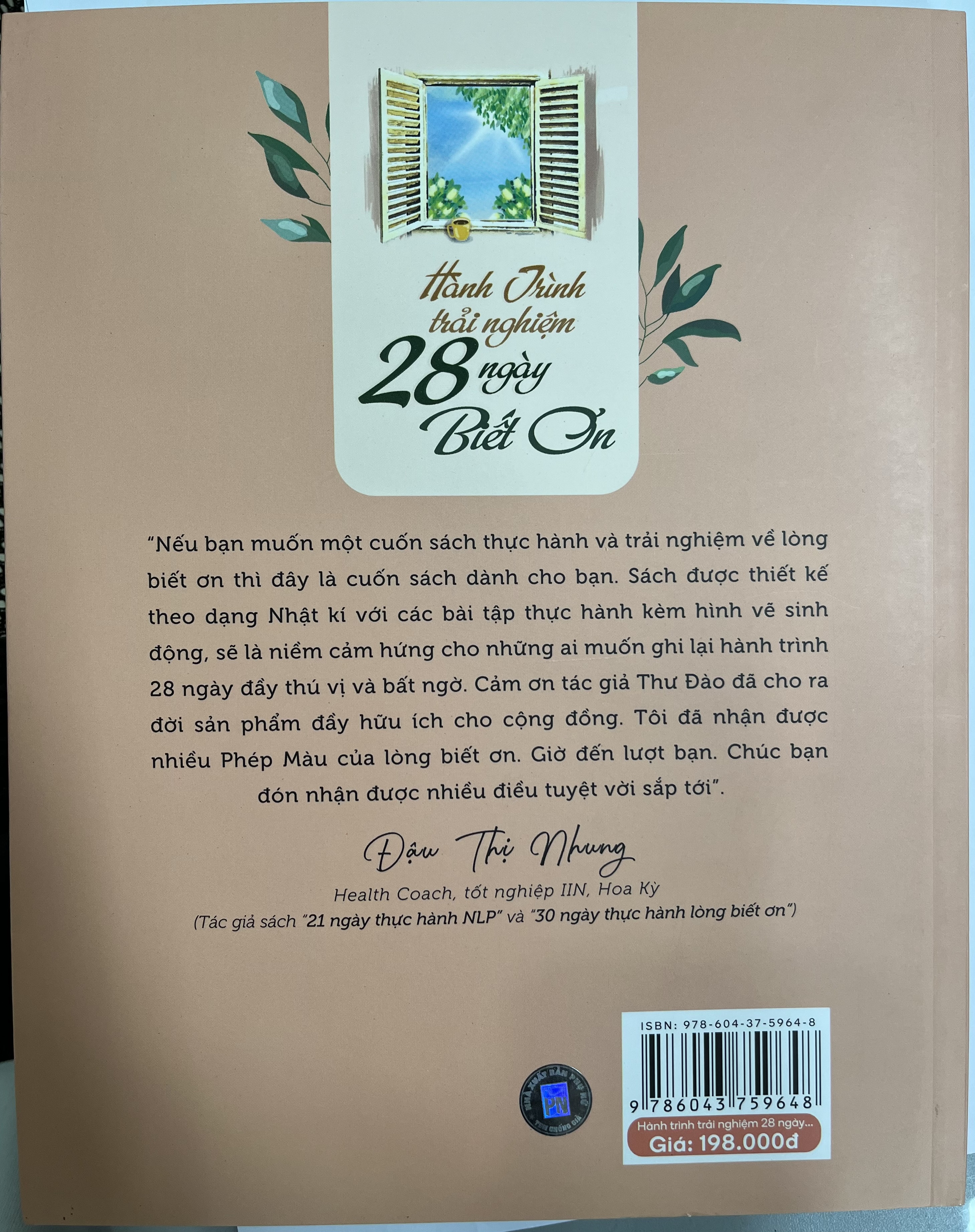 “Nếu bạn muốn một cuốn sách thực hành và trải nghiệm về lòng biết ơn thì đây là cuốn sách dành cho bạn. Sách được thiết kế theo dạng Nhật ký với các bài tập thực hành kèm hình vẽ sinh động, sẽ là niềm cảm hứng cho những ai muốn ghi lại hành trình 28 ngày đầy thú vị và bất ngờ. Cảm ơn tác giả Thư Đào đã cho ra đời sản phẩm đầy hữu ích cho cộng đồng. Tôi đã nhận được nhiều Phép Màu của lòng biết ơn. Giờ đến lượt bạn. Chúc bạn đón nhận được nhiều điều tuyệt vời sắp tới.”II.THÔNG TIN CHI TIẾT