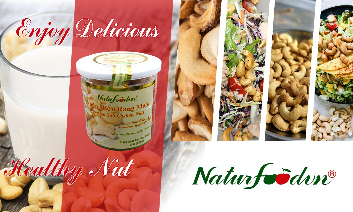 - Chất xơ: 12% Quy cách đóng gói sản phẩm: hộp tròn, đóng nắp nhựa kèm nắp kẽm có khoen. Hạt điều vỏ lụa Natufoodvn làm món gì ngon? Nhờ hàm lượng dinh dưỡng phong phú cùng hương vị đặc trưng thơm béo mà sản phẩm này được ứng dụng rộng rãi như một nguyên liệu không thể thiếu của mọi nhà::