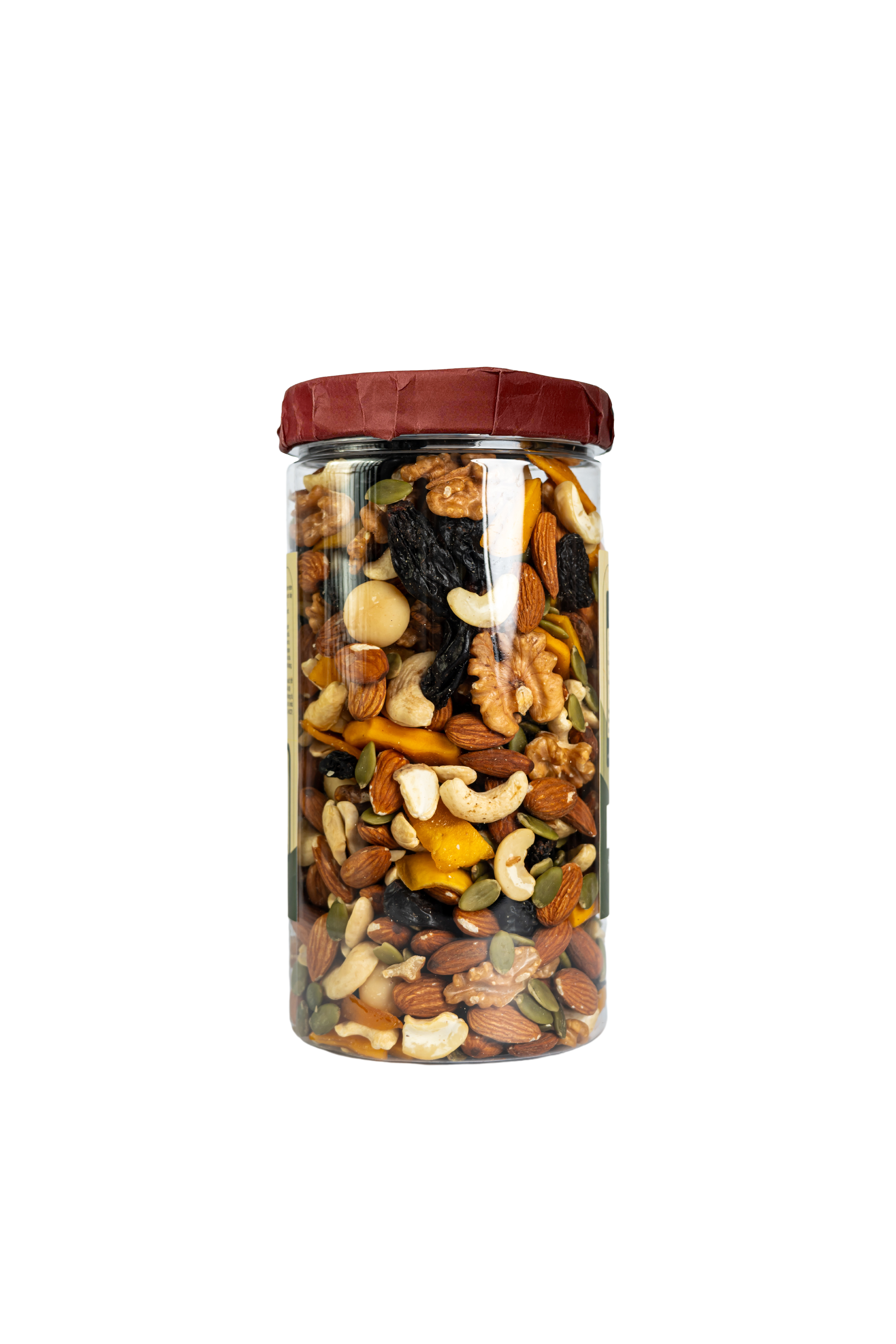Hũ hạt dinh dưỡng mix 5 loại hạt bổ dưỡng - MeliFarm Quả Óc Vàng + Đỏ, Mắc Ca, Hạnh Nhân, Điều, Nho