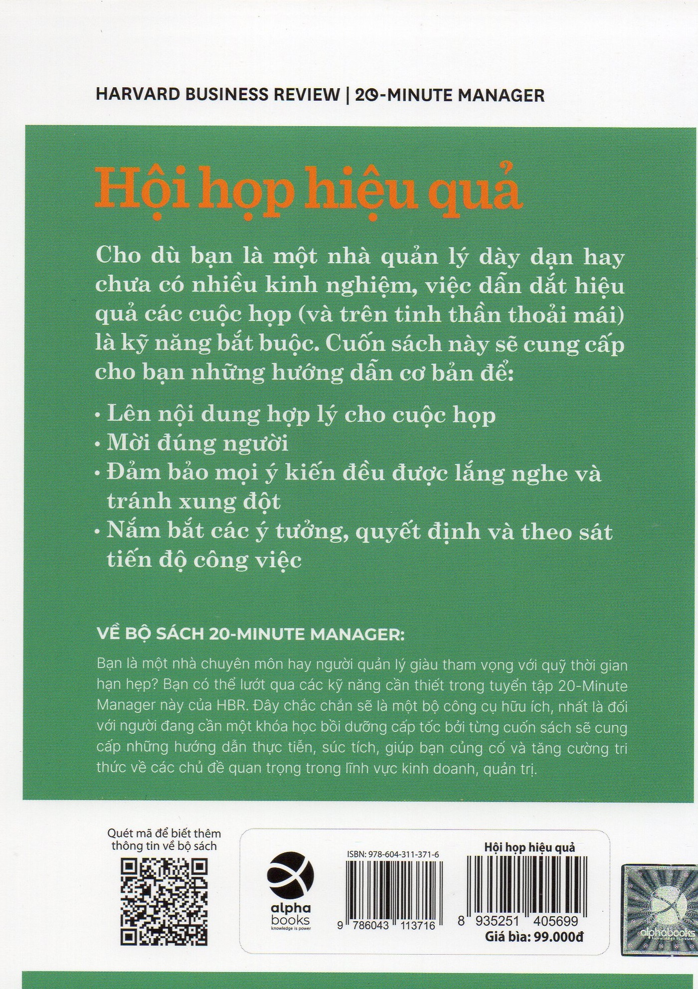 Cho dù bạn là một nhà quản lý dày dạn hay chưa có nhiều kinh nghiệm, việc dẫn dắt hiệu quả các cuộc họp (và trên tinh thần thoải mái) là kỹ năng bắt buộc. Cuốn sách này sẽ cung cấp cho bạn những hướng dẫn cơ bản để: