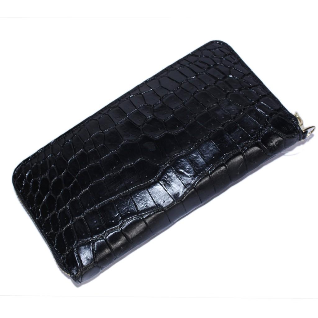 ✨HC3742 - Ví nữ da cá sấu Huy Hoàng 1 khóa nguyên con bụng màu đen