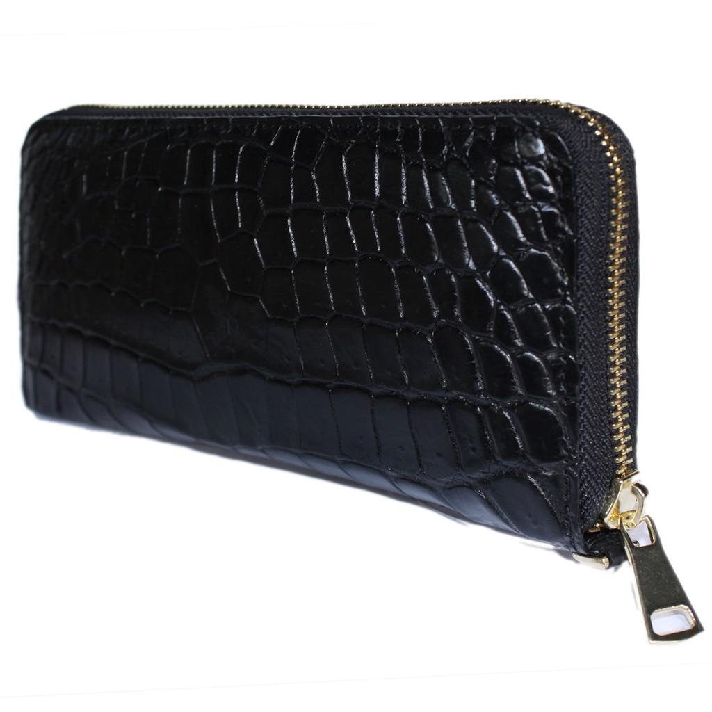 Ví/Bóp nữ da bò Huy Hoàng vân cá sấu nhỏ 1 khóa màu đen 3170