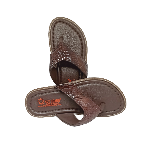 Dép nam Huy hoàng da bò quai ngang màu nâu 7137