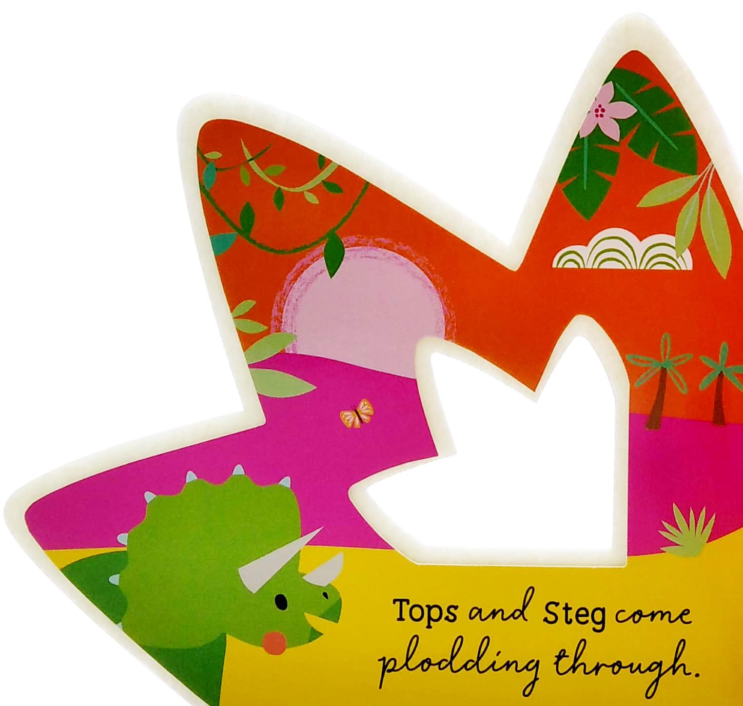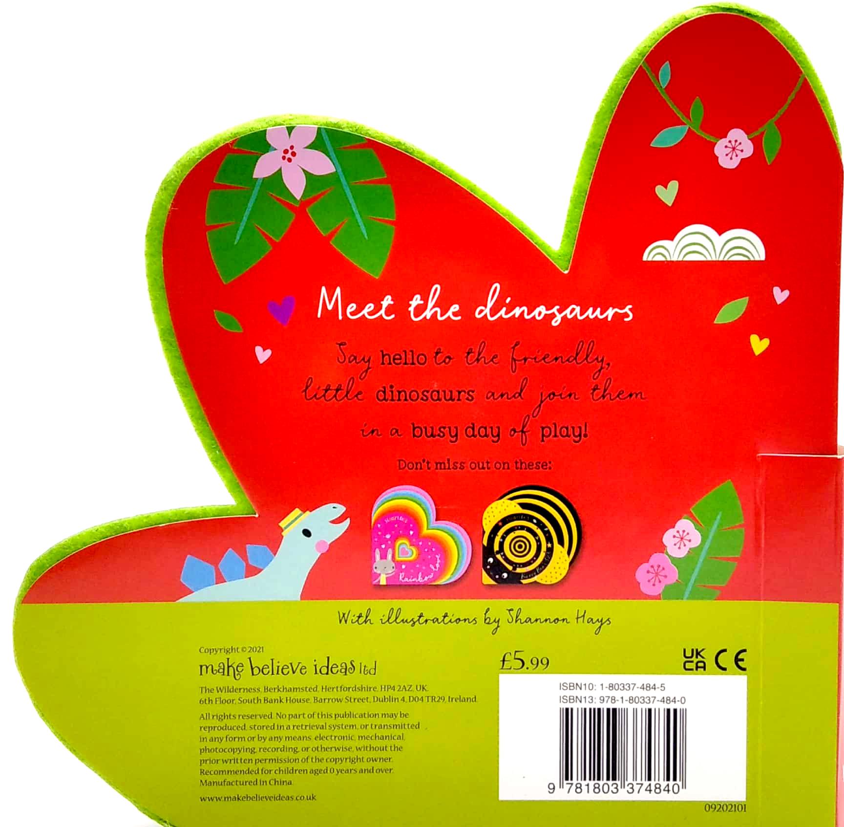 Say hello to the friendly, little dinosaurs and join them in a busy day of play! This sweet book is shaped like a dinosaur footprint, and has layered soft felt pages throughout.
