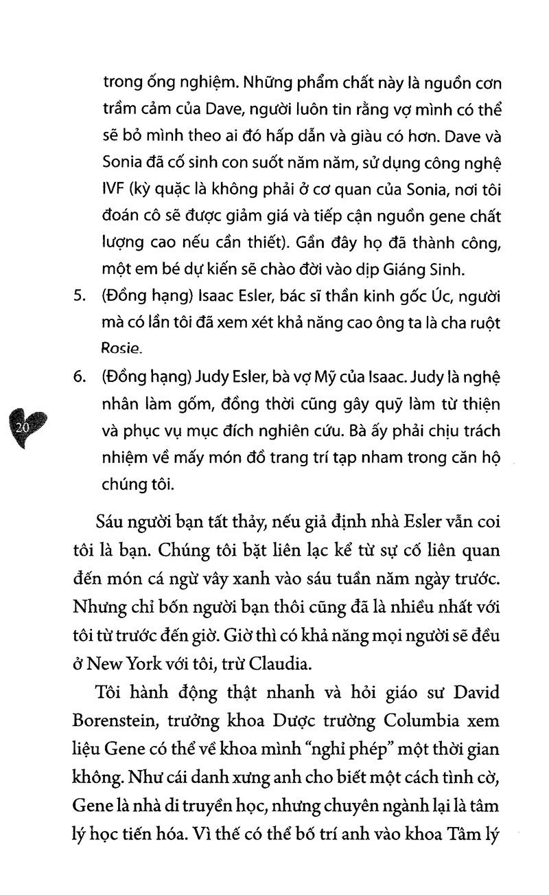 Hiệu Ứng Rosie Phần tiếp theo của cuốn tiểu thuyết hài hước số 1 nước Úc 'Dự Án Rosie' Sau khi Dự Án Vợ kết thúc, nhà di truyền học bốn mươi mốt tuổi Don Tillman cùng 'sao chổi' Rosie chuyến đến New York và tận hưởng mười tháng mười ngày nên vợ nên chồng ngọt ngào, dù Don phải hy sinh những bữa ăn được cân đối hoàn hảo dinh dưỡng, chạy theo một lịch trình 'yêu' đầy bất ngờ và không thể dự đoán nổi. Nhưng một lần nữa, nàng Rosie đã thả cả chùm bom hạng nặng. Và chàng Don phải đương đầu với thử thách lớn nhất giáng xuống cuộc đời vốn ngăn nắp đồng thời xoay xở để không bị trục xuất, bị khởi kiện và bị ô danh với tư cách một nhà khoa học. Liệu Don Tillman đã sẵn sàng để trở thành người đàn ông chàng muốn hướng đến hay chưa? Hay liệu chàng có quay trở lại nếp sống cũ và đối mặt với nguy cơ vĩnh viễn mất đi Rosie hay không?