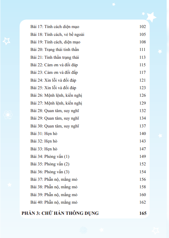 Mỗi phần có một đặc trưng riêng, ngoài ra chúng tôi còn có đĩa CD phối kèm với giọng đọc của người bản xứ giúp bạn quen với ngữ điệu của người Nhật. Trong quá trình biên soạn còn nhiều thiếu sót mong bạn đọc gần xa chỉ bảo và giúp đỡ.