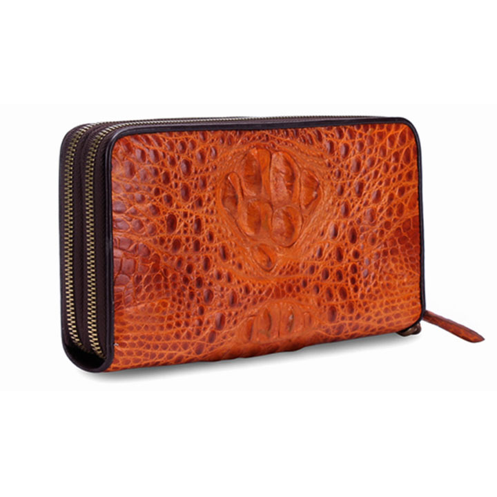 Ví da cá sấu cầm tay 2 ngăn khoá kéo | Ví cầm tay màu nâu đỏ