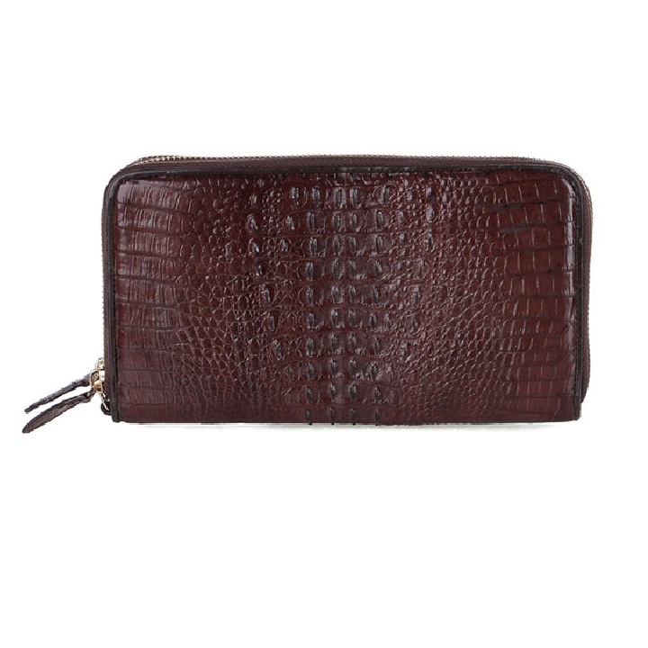 Ví da cá sấu cầm tay 2 ngăn khoá kéo | Ví cầm tay màu nâu đỏ