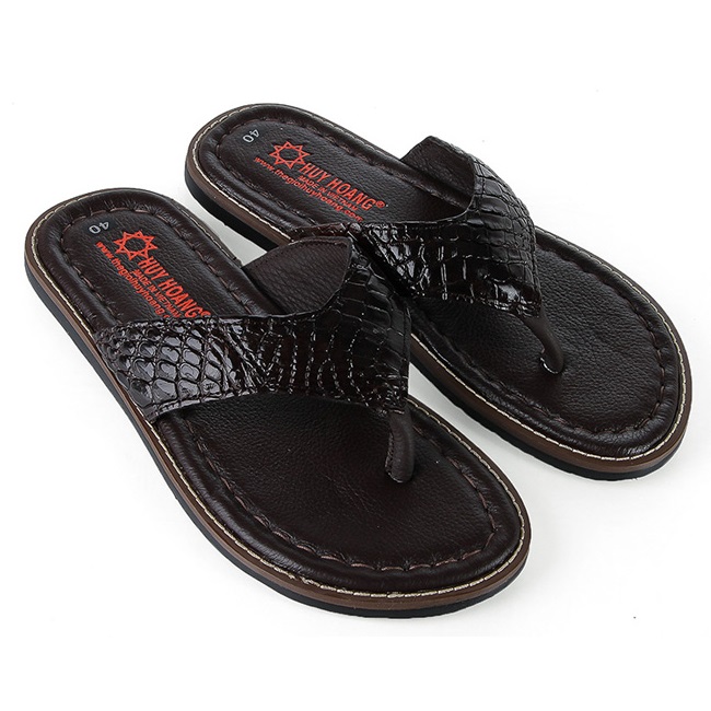 - Dép nam Huy Hoàng được làm từ chất liệu da cá sấu cao cấp nên càng sử dụng lâu bề mặt sẽ càng bóng đẹp tự nhiên. Da cá sấu mềm mại sẽ hạn