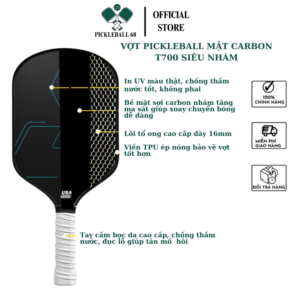 Vợt pickleball Carbon T700 cao cấp phù hợp cho mọi người - Tặng kèm 2 trái banh Pickleball