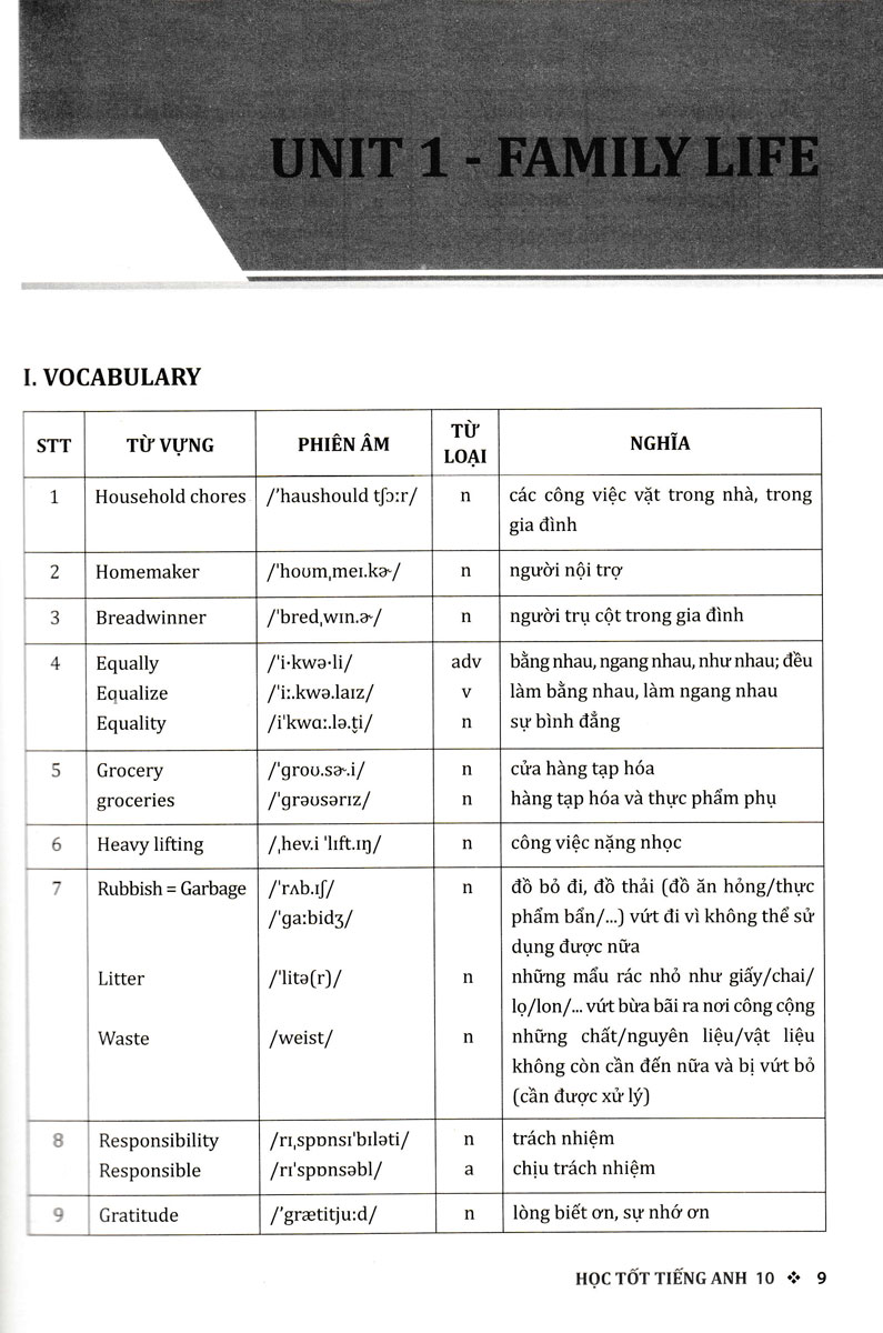 GLOBAL SUCCESS 10 - Unit 1. FAMILY LIFE - VOCABULARY