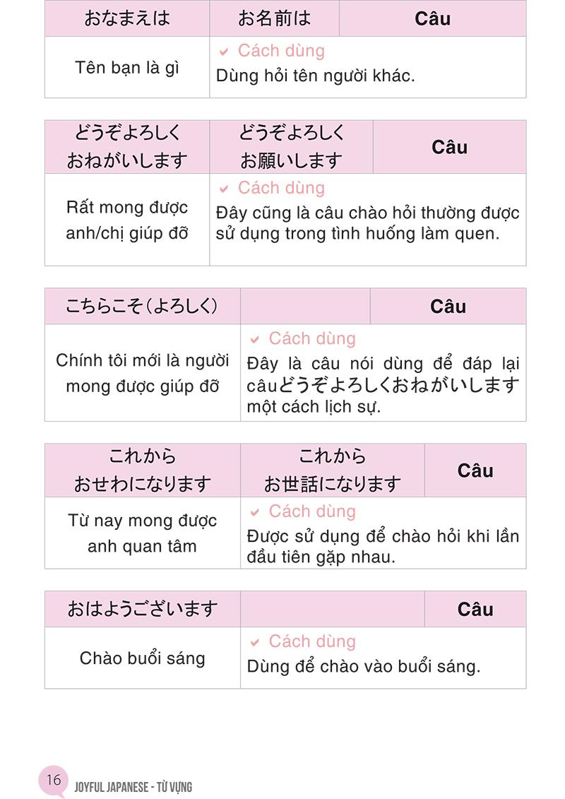 • Hướng dẫn cách sử dụng từ vựng tiếng Nhật vô cùng chi tiết với nhiều câu ví dụ tương ứng với các tình huống kèm theo hình ảnh minh họa sinh động