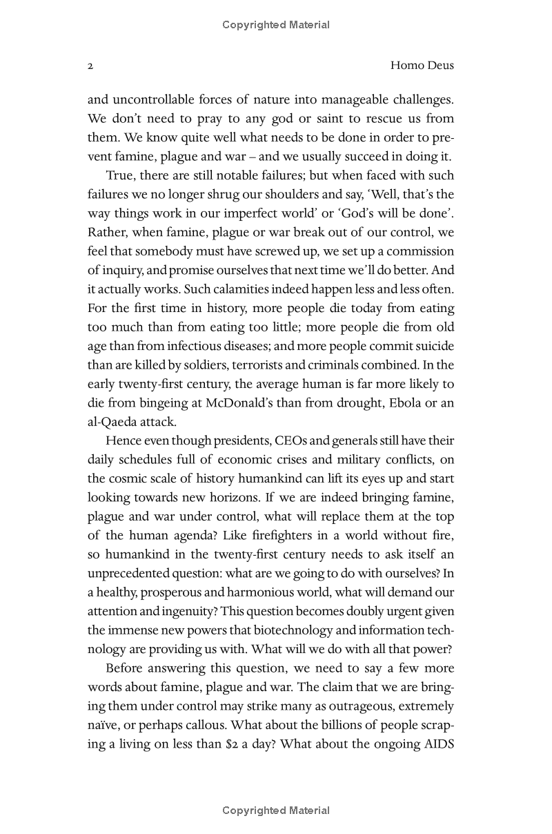 Yuval Noah Harari envisions a near future in which we face a new set of challenges. Homo Deus explores the projects, dreams and nightmares that will shape the twenty-first century and beyond – from overcoming death to creating artificial life.