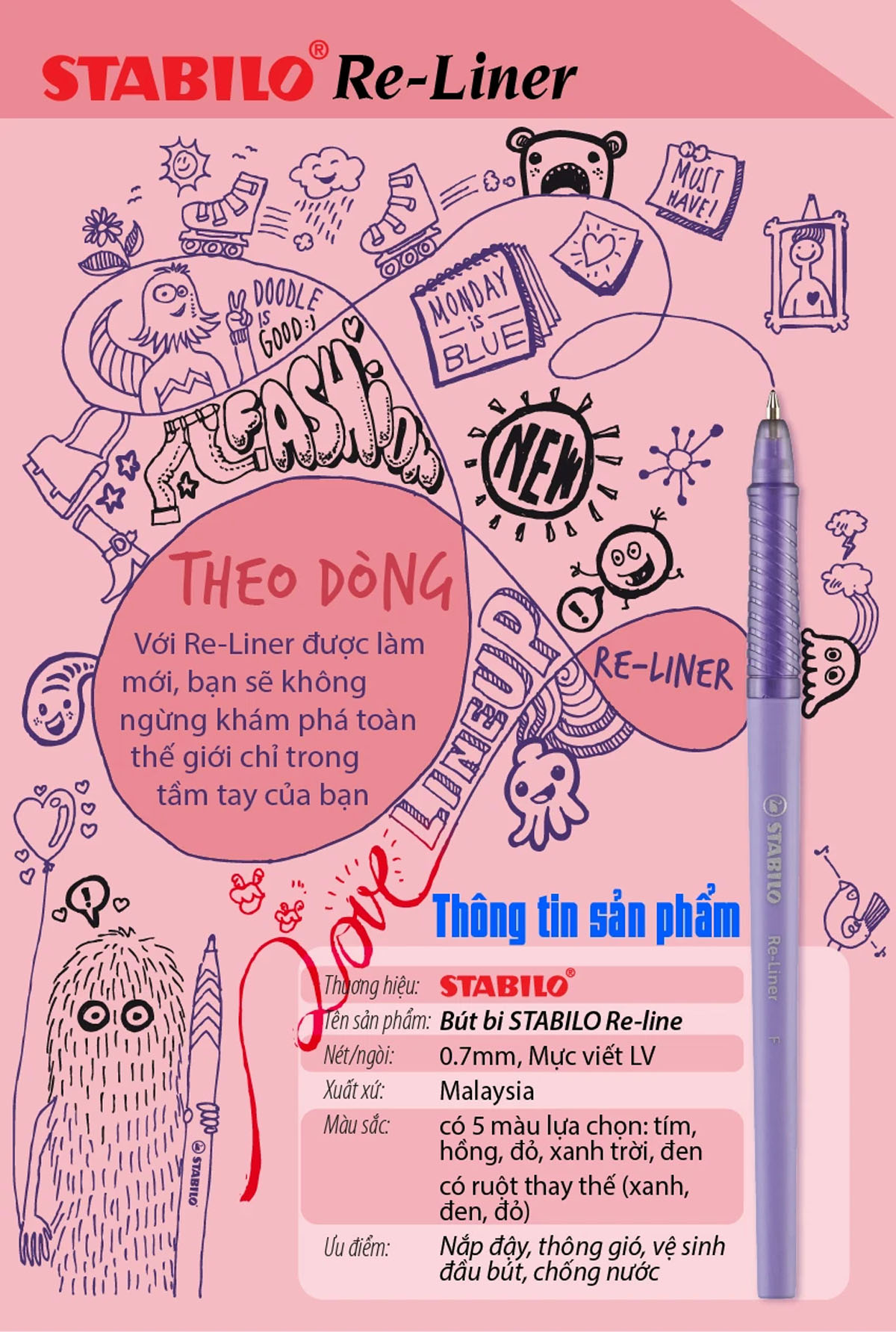 ✨Hộp 10 Bút bi nắp STABILO Re-Liner F 0.7mm (BP868F/10) - Tím