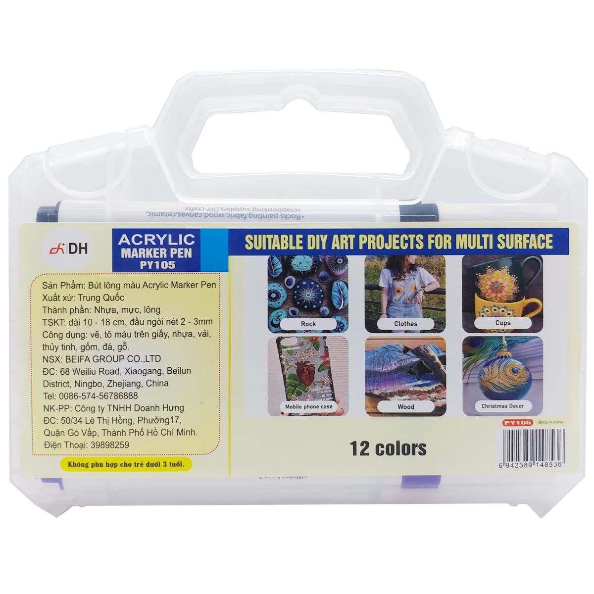 Mua tại TiktokHộp 12 Bút Lông Màu Acrylic Marker Pen - DH PY105