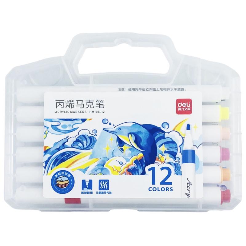 ✨Hộp 12 Bút Lông Màu Acrylic Markers - Deli HM108-12