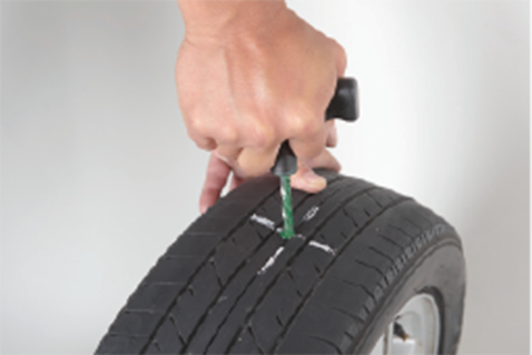 - Sợi vá được đưa vào từ bên ngoài lốp, kiểu dáng cấu tạo đặc biệt giúp dễ dàng luồn qua dùi và trở lại tròn trịa khi đã được đưa vào lỗ thủng.