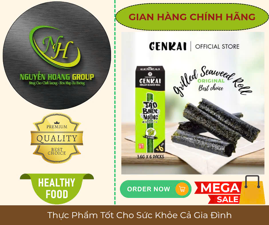 ✨Hộp 6 Cuộn - Rong Biển Nướng Cuộn Vị Tự Nhiên GENKAI 21.6g( 3.6g × 6 Cuộn)