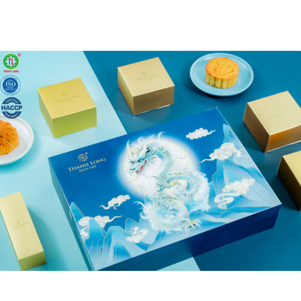 Hộp 2 bánh trung thu 2 trứng 270g - Thành Long (540g) - Combo A: gồm: Nhân thập cẩm xá xíu gà quay jambon 2 trứng 270g Nhân đậu xanh 2 trứng 270g - Combo