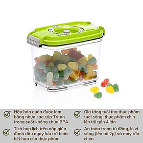 - Hộp bảo quản được làm bằng nhựa cao cấp Tritan trong suốt không chứa BPA - Gia tăng tuổi thọ thực phẩm tươi sống, thực phẩm chín lên tới gần 4 lần - Tích
