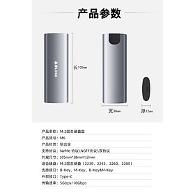 THÔNG SỐ KỸ THUẬT : Tính năng Truyền dữ liệu Giao tiếp Đầu ra: USB3.1 Type-C Tốc độ USB3.1 GEN2 10Gbps. Tương thích Hỗ trợ SSD: M.2 M-Key/B&M-Key SSD NVME 2230,2242,2260 và 2280 Chất