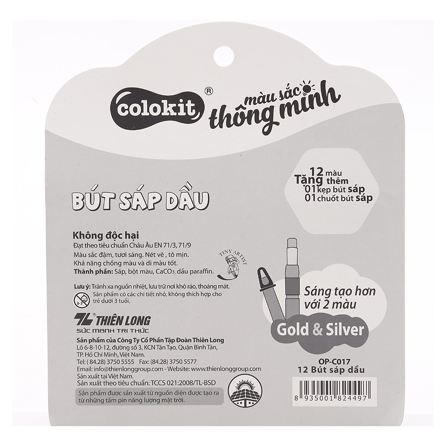 - Hộp Bút Sáp Dầu Thiên Long OP-C017 12 Màu (Tặng 1 Kẹp Bút Sáp - 1 Chuốt Bút Sáp) được làm từ chất liệu sáp, bột màu an toàn, đảm bảo an toàn cho