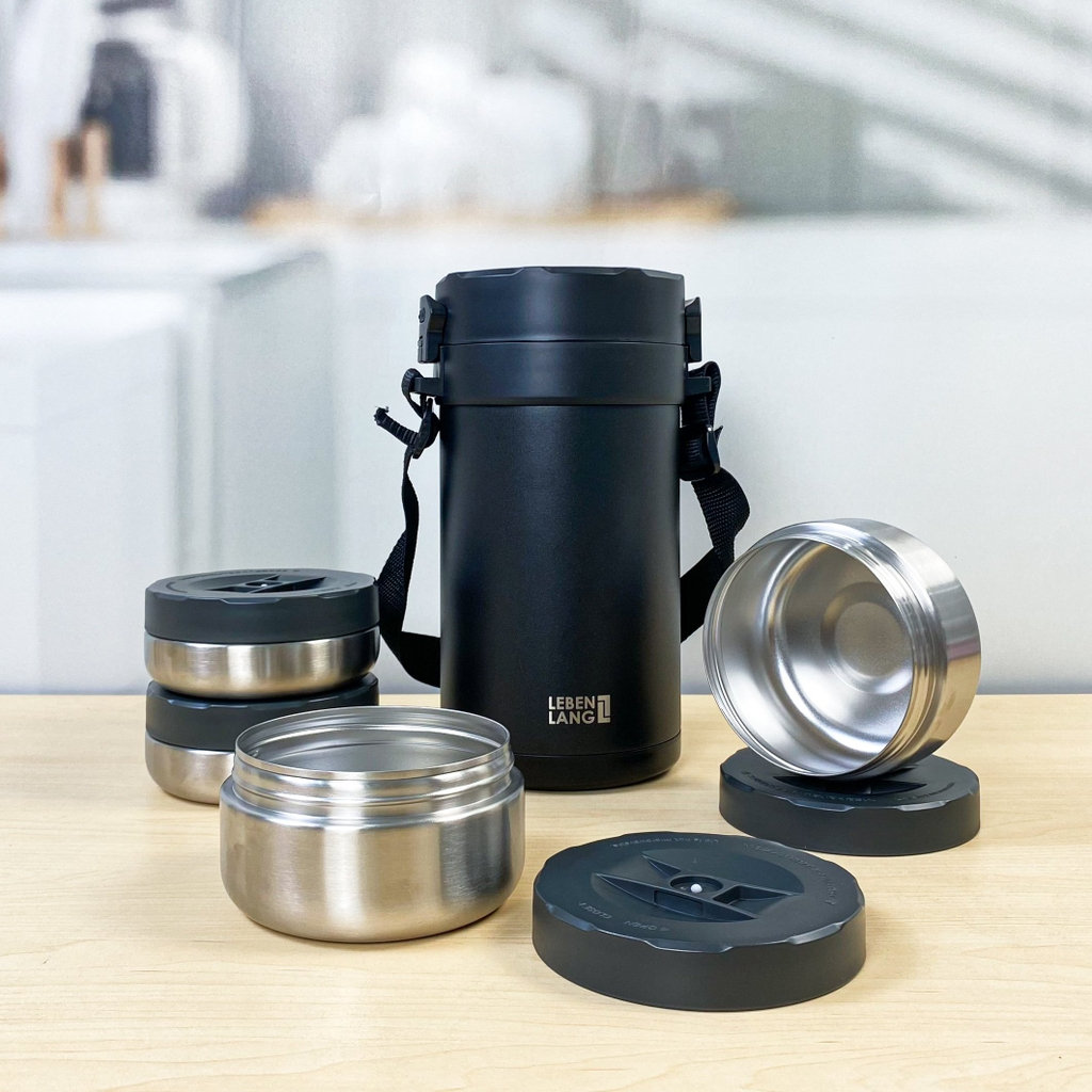 Hộp cơm giữ nhiệt 4 ngăn Inox 304 Lebenlang Đức LBT856 dung tích 2.2L giữ nhiệt 12h, Zalo 0986588655