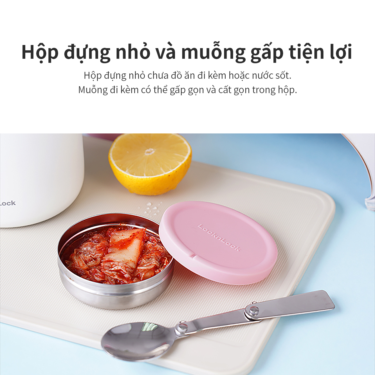Hộp cơm giữ nhiệt Lock&Lock LHC8042 700ml - Hàng chính hãng, 2 ngăn kèm muỗng inox - JoyMall Chất liệu: - Thân + muỗng + hộp nhỏ: thép không gỉ 304 - Nắp ngoài: Nhựa