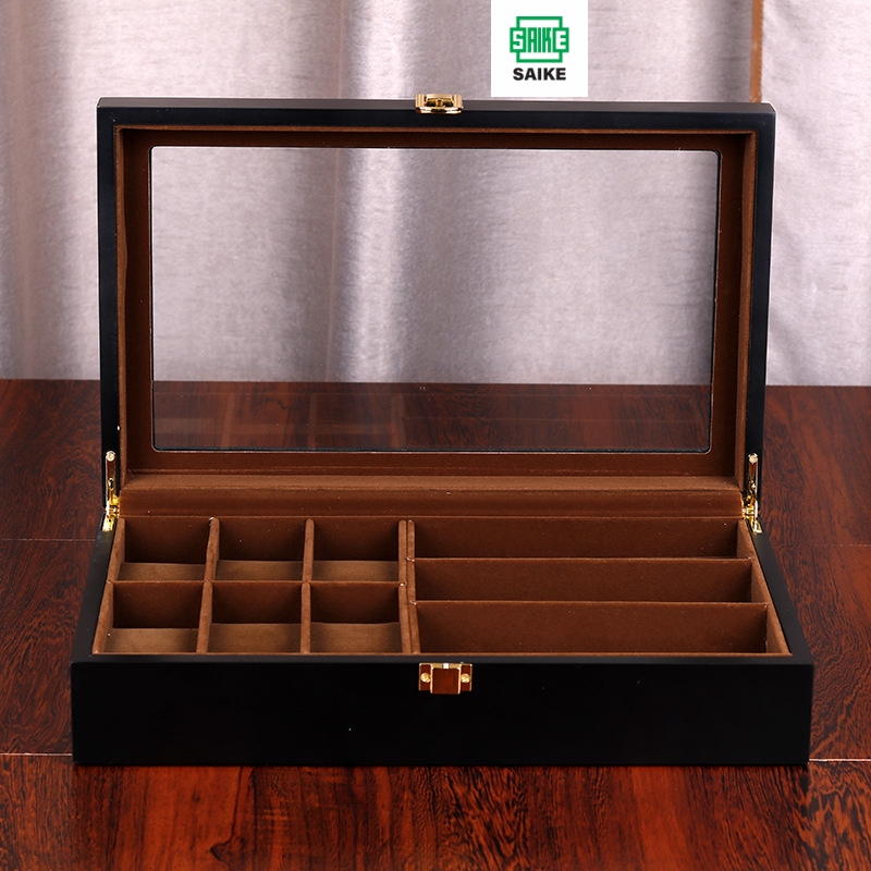 ———————————— Thông tin sản phẩm: Hộp Đựng Đồng Hồ 12 Ngăn SAIKE S122 Mẫu Hộp Mới Màu Vân Gỗ - Thương hiệu: SAIKE - Hộp có nắp kính, sẵn cục mút để đồng hồ, chốt