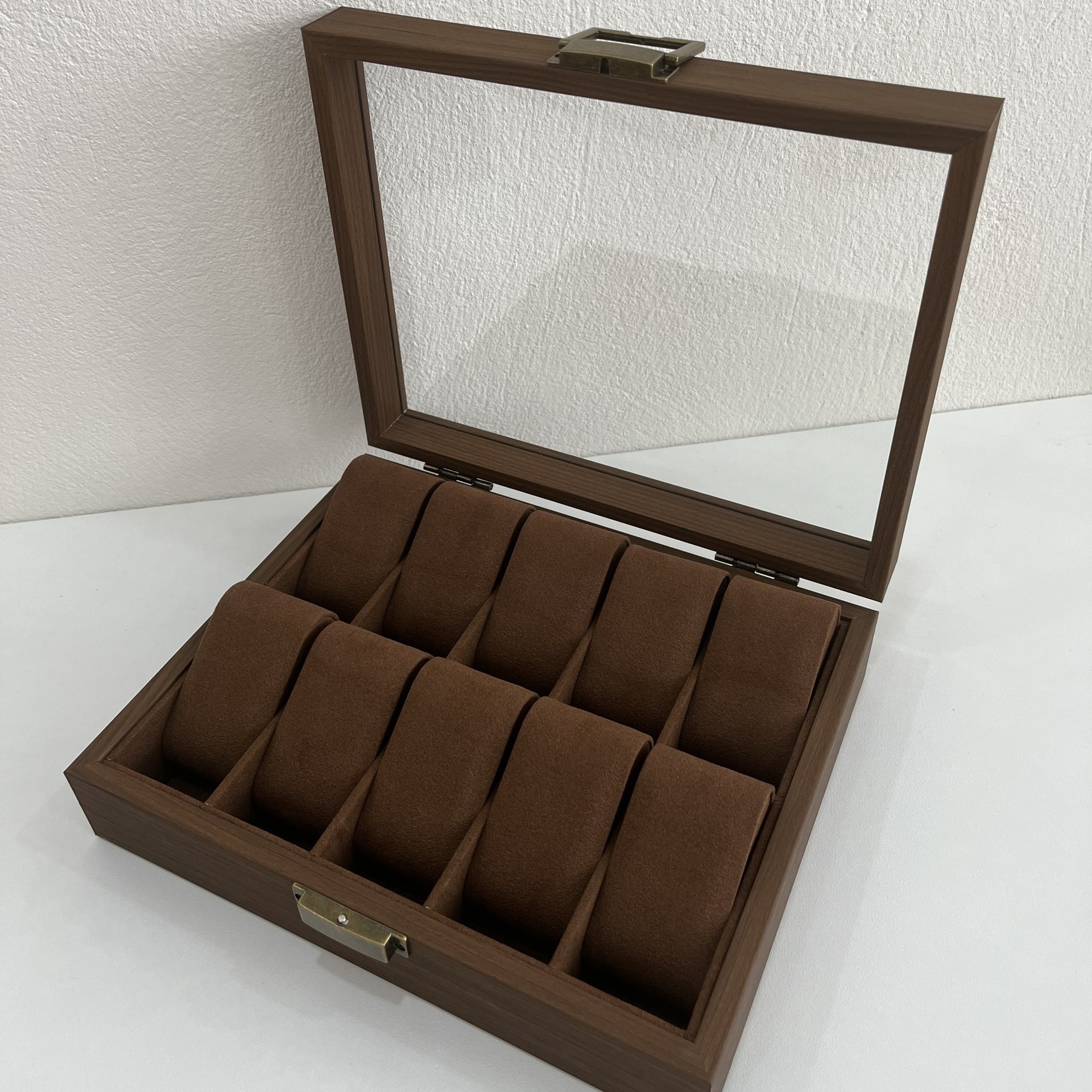 Hộp Để Đồng Hồ 10 Ngăn Vỏ Da Màu Vân Gỗ - DH10DN