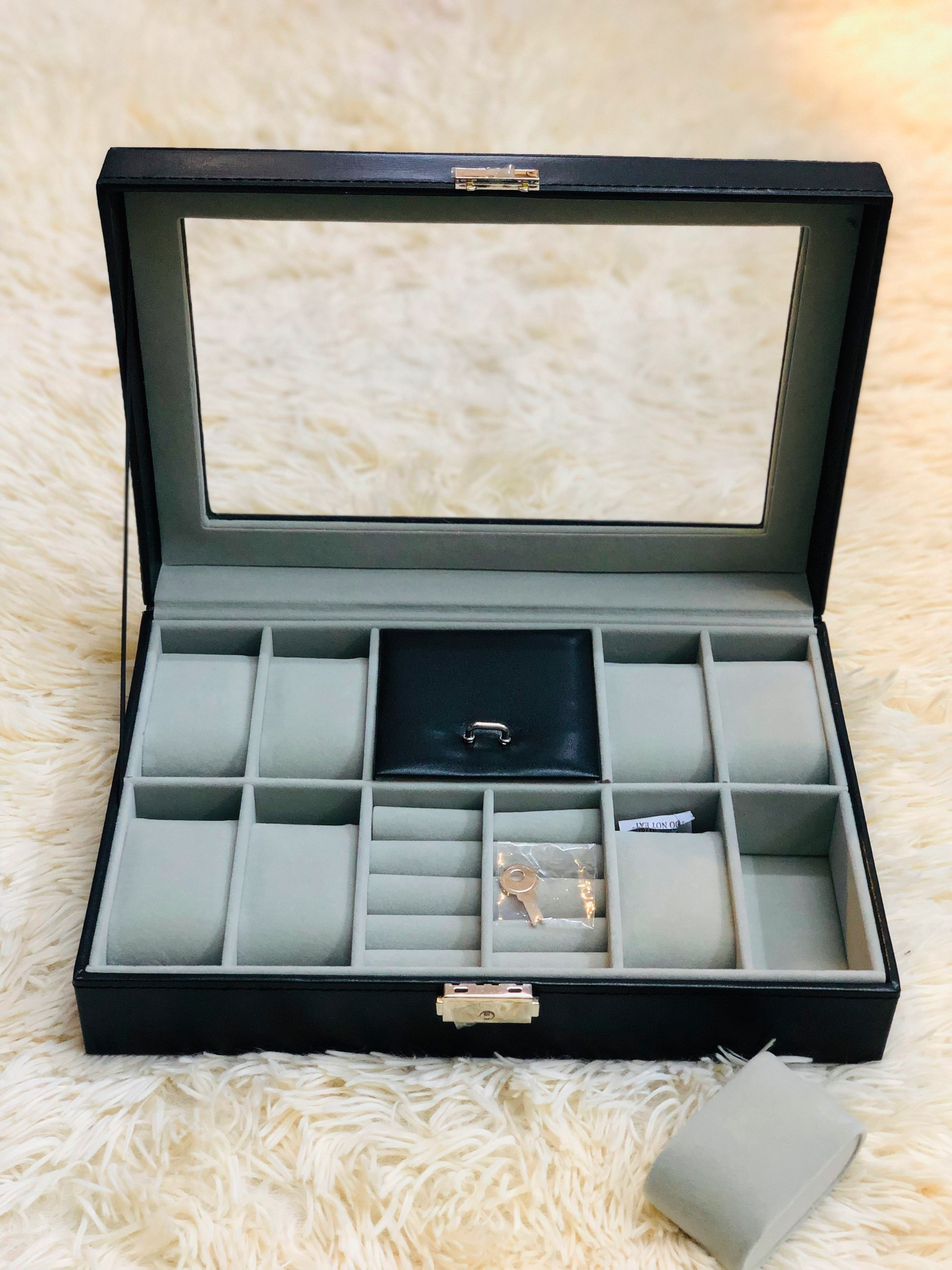 Bạn có khoảng 6-8 chiếc đồng hồ và phụ kiện trang sức như nhẫn, vòng ùng với đó bạn thích hộp có mặt kính để nhìn thấy phụ kiện bên trong hộp và hộp có