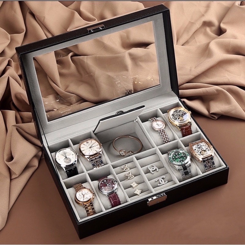 Mua tại TiktokBạn có khoảng 6-8 chiếc đồng hồ và phụ kiện trang sức như nhẫn, vòng ùng với đó bạn thích hộp có mặt kính để nhìn thấy phụ kiện bên trong hộp và hộp có khóa để nhiều khi tránh bé nhỏ nghịch ngợm. Chẳng còn phải băn khoăn gì nữa vì đây chính là hộp bạn đang cần