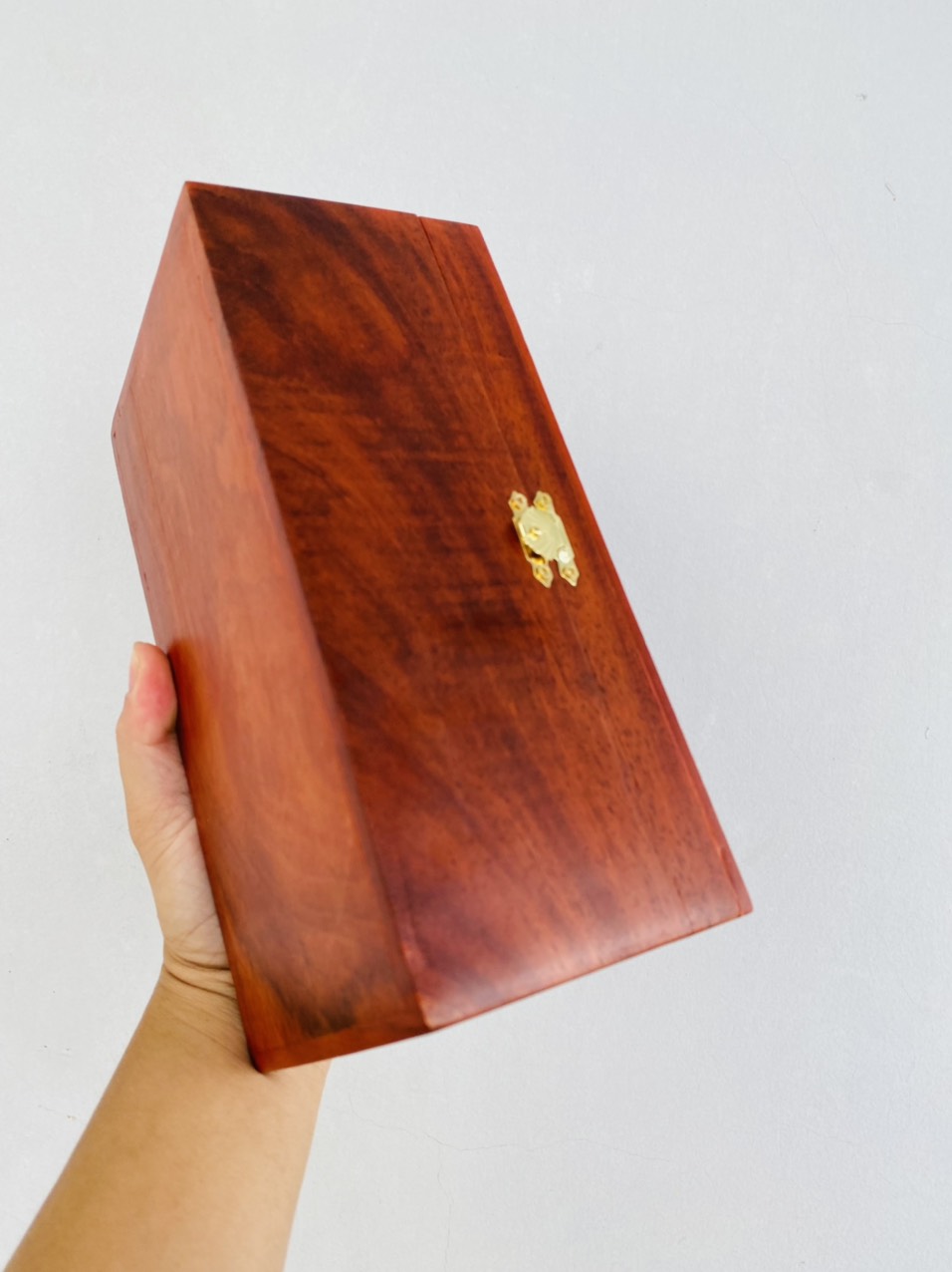 HỘP ĐỰNG GIẤY ĂN GỖ HƯƠNG : - Xuất xứ : Mian Việt Nam - Chất liệu : gỗ Hương tự nhiên - Kích thước họp : + Dài 22cm + Rộng 12cm + Cao 10cm