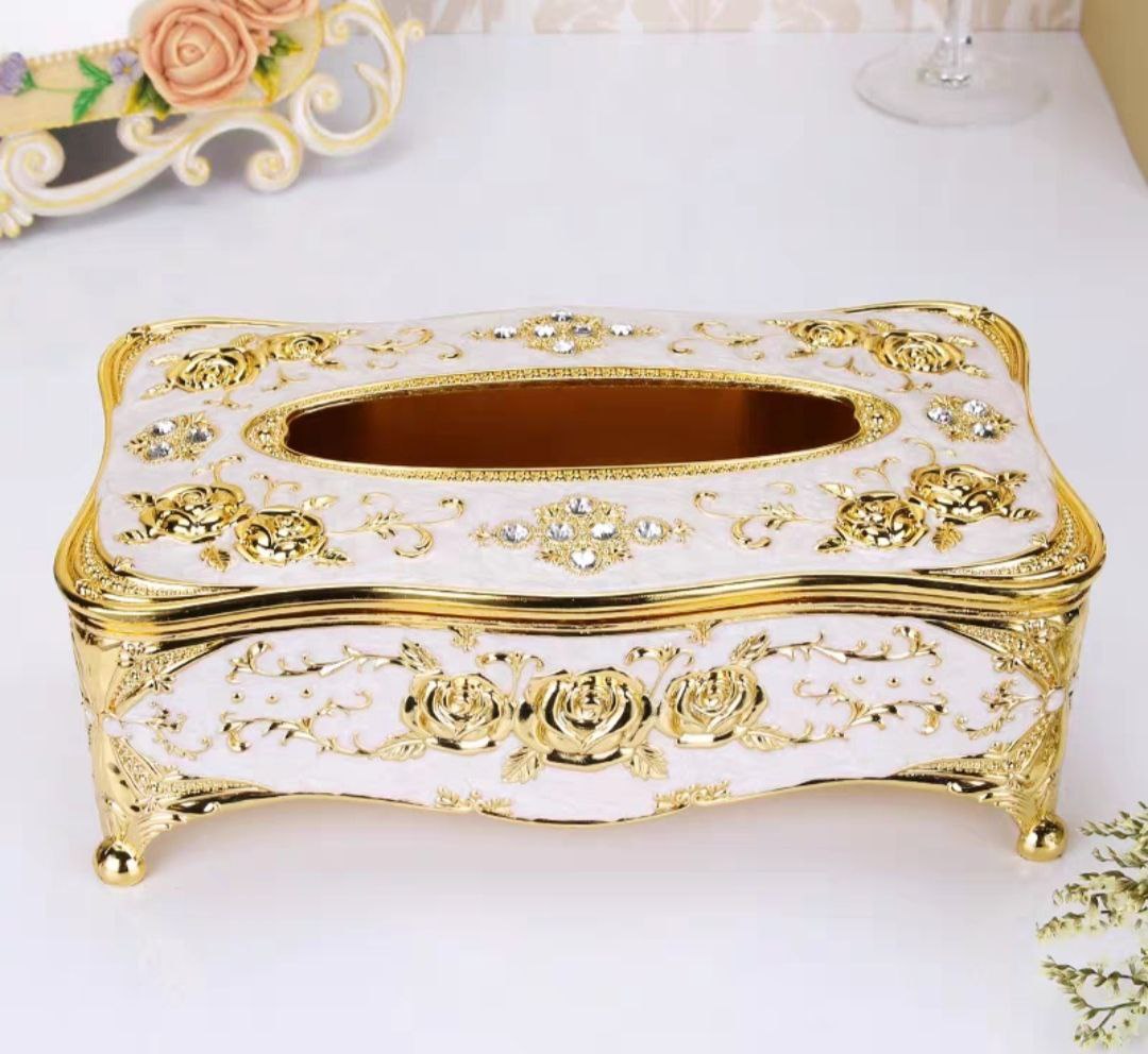 - Hộp đựng giấy ăn được trang trí hoa văn tinh xảo mang tính nghệ thuật cao mang phong cách cổ điển Châu Âu.