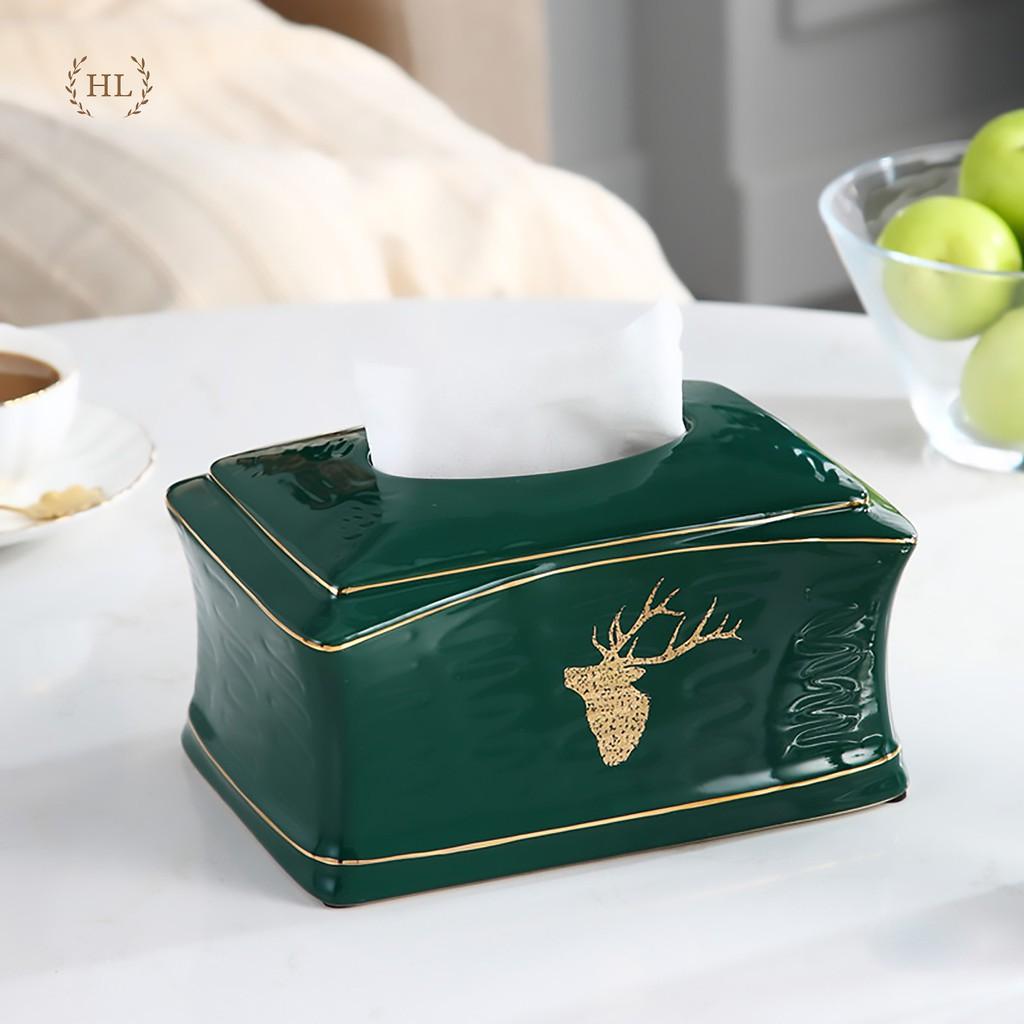 ✨Hộp Đựng Khăn Giấy Gốm Sứ Xanh Ngọc Lục Bảo Phong Cách Bắc Âu | HỘP ĐỰNG GIẤY CHẤT LIỆU SỨ KẺ VÀNG KIM