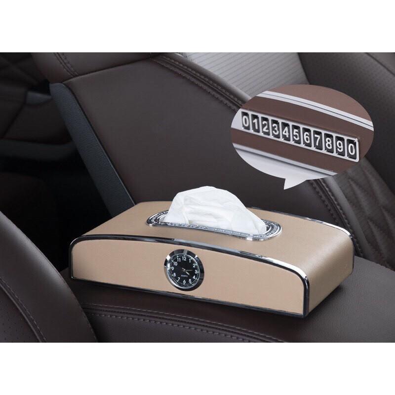✨Hộp Đựng Khăn Giấy Trên ô Tô Có Đồng Hồ Và Bảng Số điện Thoại Cao Cấp (Kèm Video thực tế)