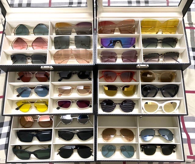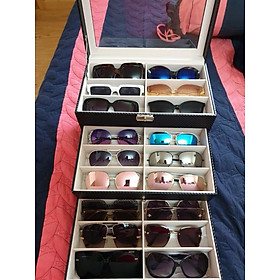 - Hộp Đựng Mắt Kính 3 Tầng Đựng 18 Kính SAIKE S318 Bọc Da Carbon Màu Đen