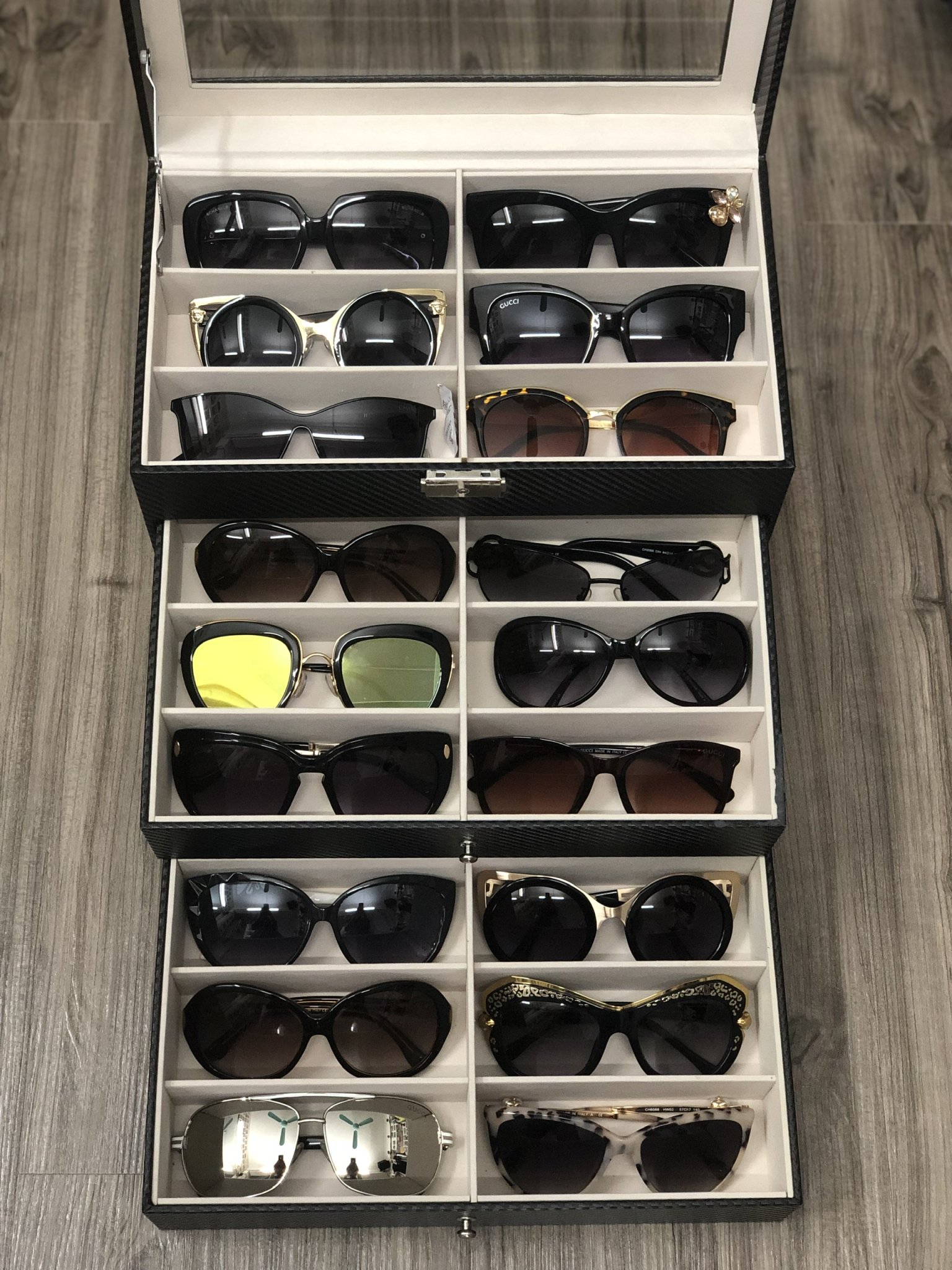 ✨Hộp Đựng Mắt Kính 3 Tầng Đựng 18 Kính SAIKE SAIKE S318 Bọc Da Carbon Màu Đen
