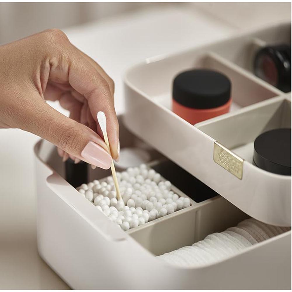Joseph Joseph là một trong những thương hiệu luôn mong muốn mang đến cho khách hàng những sản phẩm vừa có thể tiết kiệm tối đa không gian nhưng vẫn đảm bảo khả năng lưu trữ lớn. Hộp đựng mỹ phẩm Joseph Joseph 75004 Viva sẽ không làm tốn nhiều diện tích của bàn trang điểm nay bất kì vị trí nào trong căn phòng của bạn nhờ thiết kế tối giản và nhỏ gọn vô cùng.