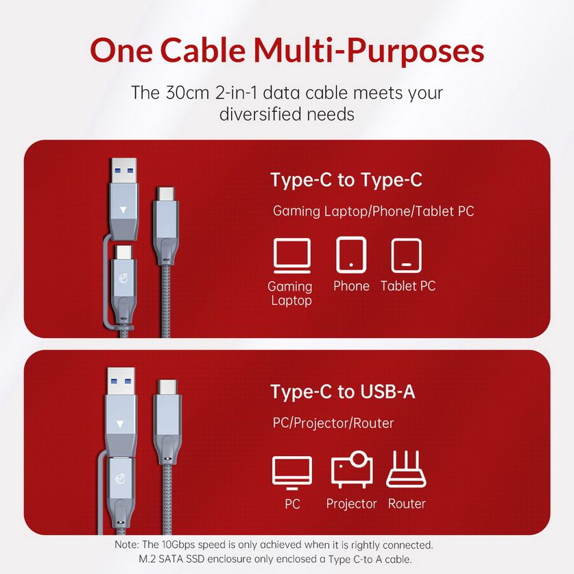 Cáp Type-C to Type-C/USB-A (30cm) – Đảm bảo kết nối ổn định, hỗ trợ tốc độ cao.