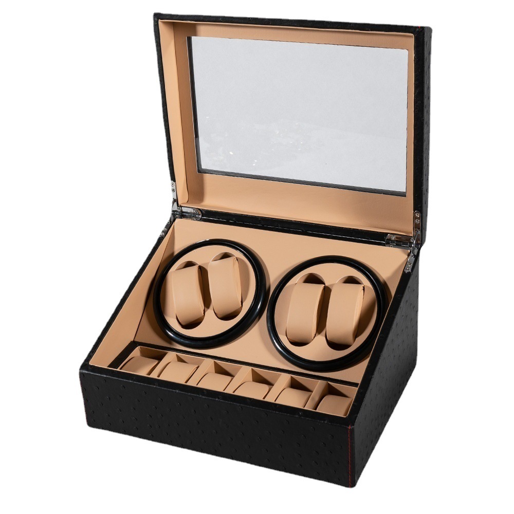 Hộp Đồng Hồ Cơ 4 Xoay + 6 Cố Định Vỏ Da Đà Điểu - Mã C4X6DD