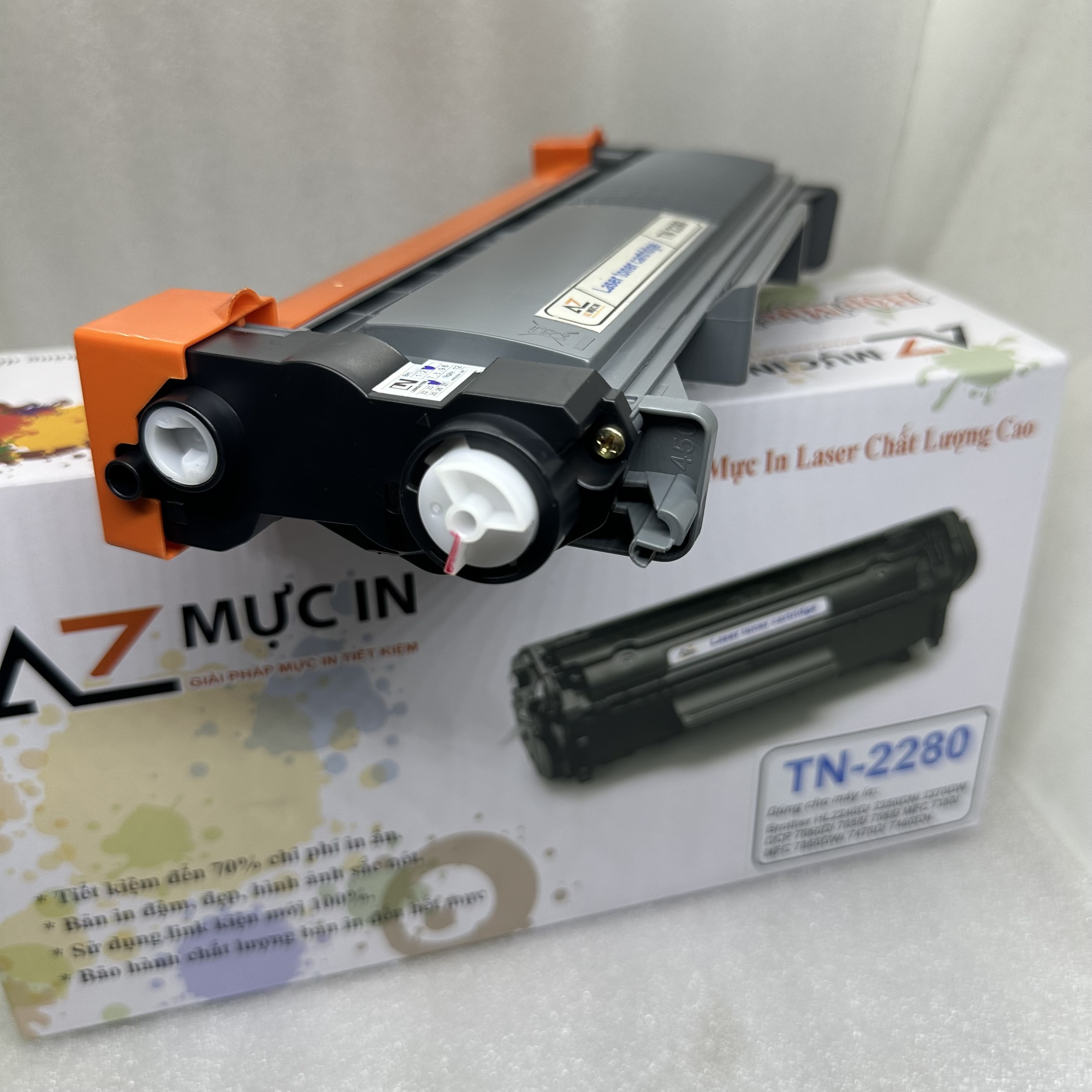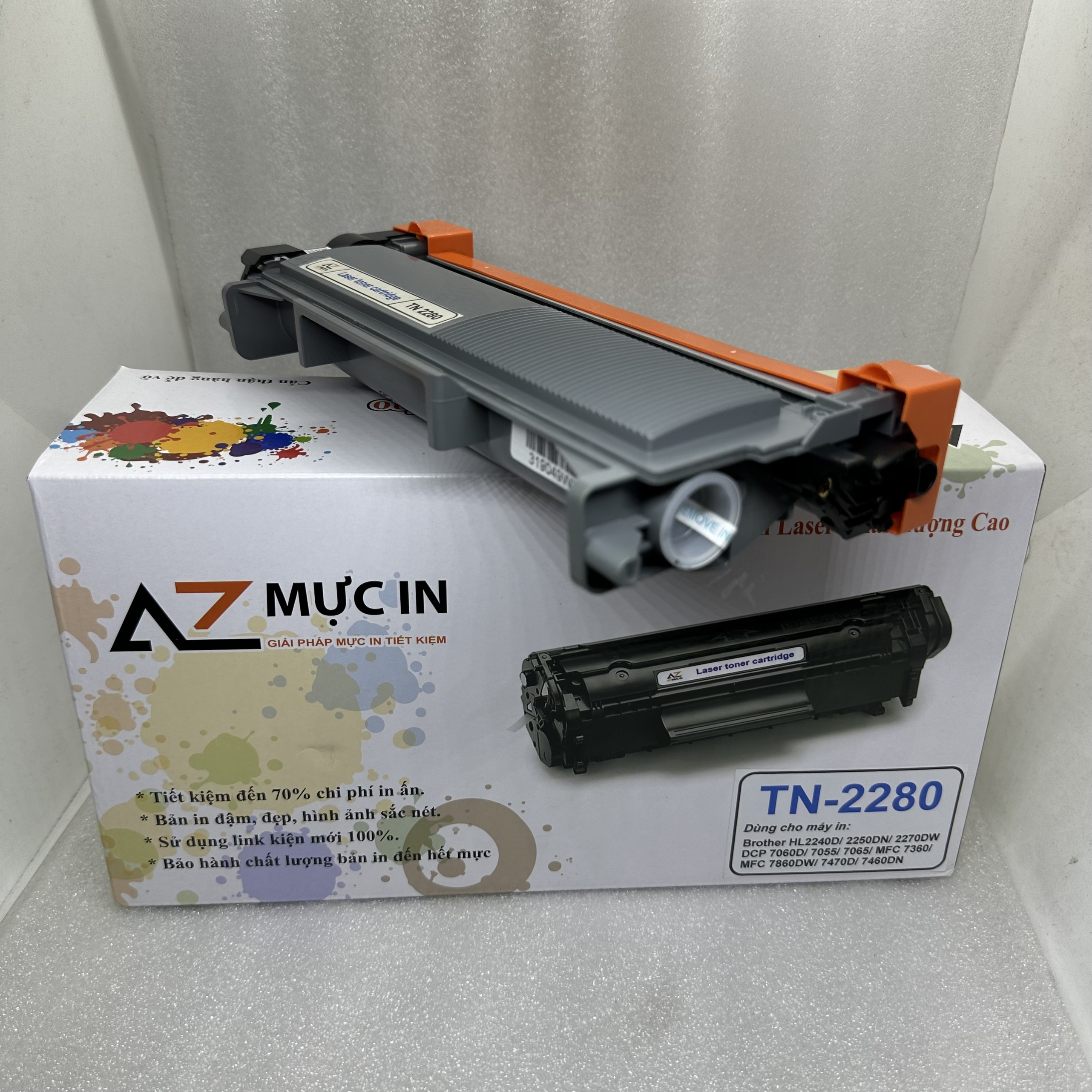 Hộp mực AZ TN2280 của chúng tôi cho ra bản in đậm đẹp, sắc nét. Với giá thành thấp, Các bạn chỉ việc mua về gắn vào sử dụng, không phải nạp mực, bụi bẩn, thay vì nạp mực giá cũng đã 130K