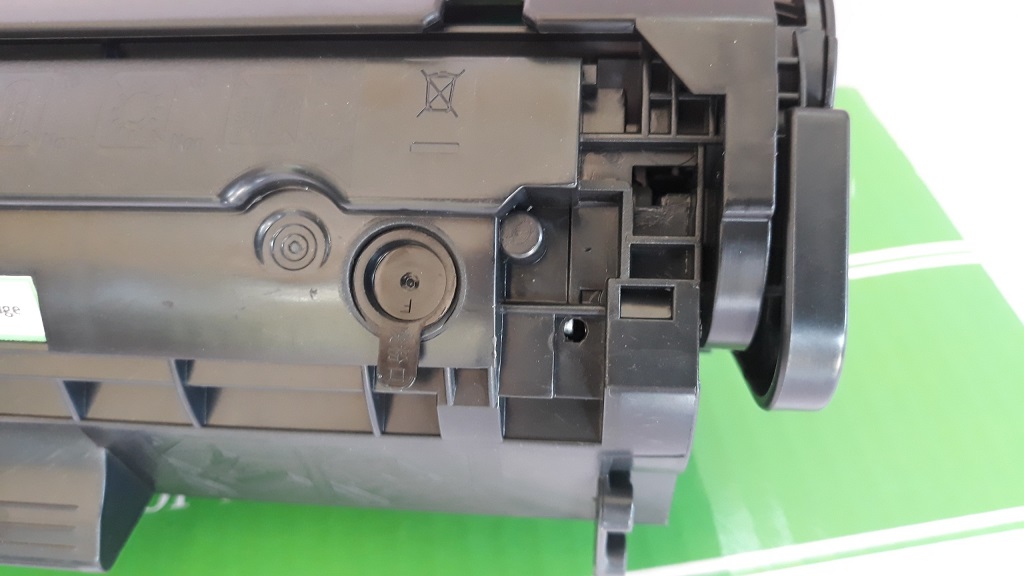 Hộp mực 85A 35A 325 TECH được thiết kế với lỗ đổ mực và lỗ xả thải để thuận tiện cho việc nạp lại mực. Điều này giúp người dùng có thể dễ dàng nạp