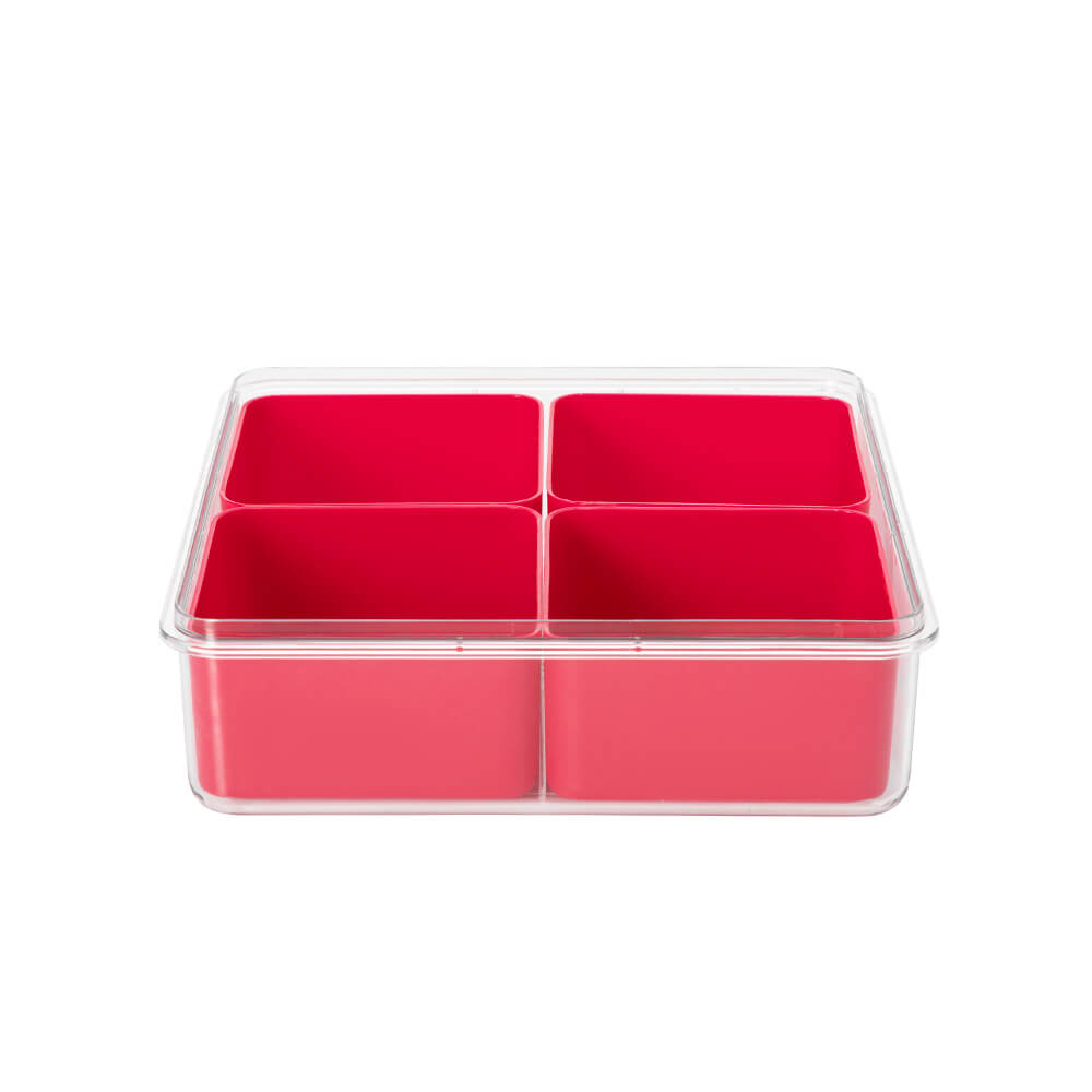 Tính linh hoạt: Với 4 khay chứa nhựa dạng rời đi kèm, sản phẩm này cho phép tổ chức và phân loại thực phẩm một cách dễ dàng và hiệu quả. Người dùng có thể tùy chỉnh sắp xếp nhiều loại thực phẩm khác nhau trong cùng không gian sử dụng của hộp.