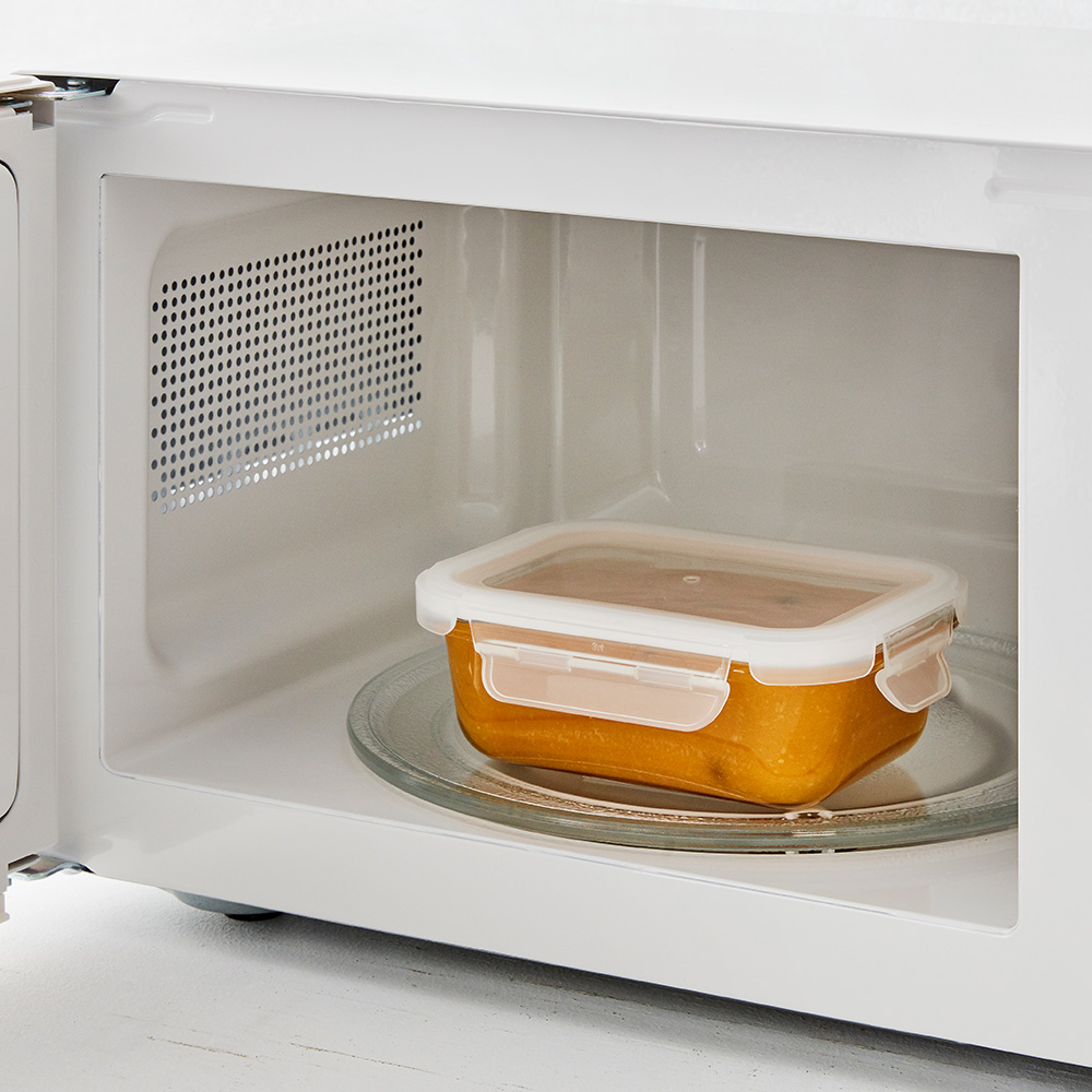 Hộp 650ml/ 15.1 x 11.3 x 7.7 cm (8) - 190.000 đồng/ cái Công dụng và tiện ích: - Trên thành hộp bảo quản thực phẩm có vạch chỉ định lượng thực phẩm tối đa