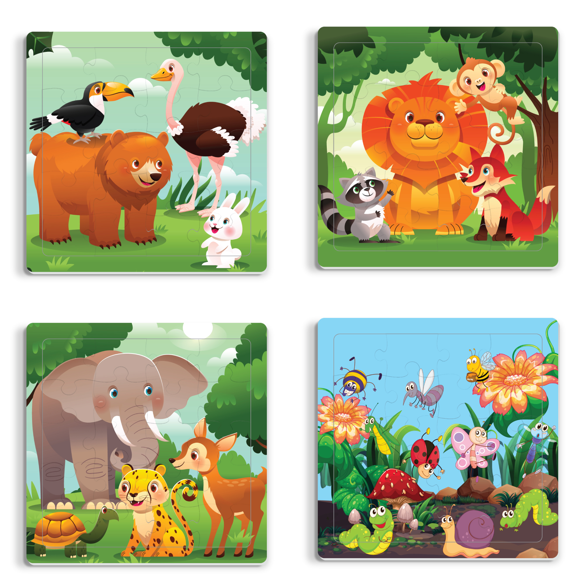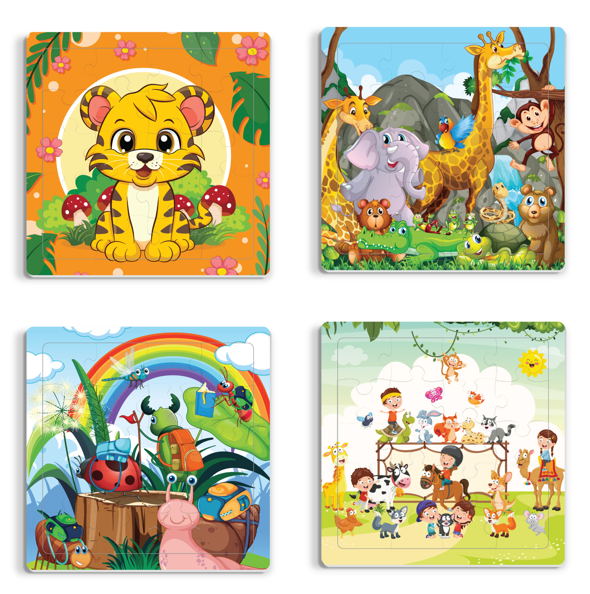 - 1 Hộp sản phẩm bao gồm 10 tấm ghép hình với chủ đề động vật.